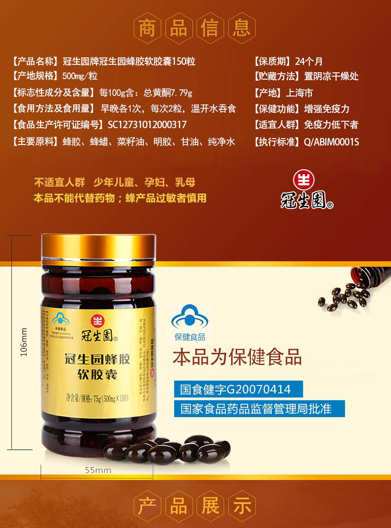 1、選購蜂膠產品應選擇有保健食品批準文號(即小藍帽標識)或藥品批準文號的產品,表明此產品已由企業通過了申報批準,經過了衛生部門做過的毒理試驗、功能性試驗,證明是安全有效的。企業按照批準的相關條件合法生產出來的產品應有一定的保證。